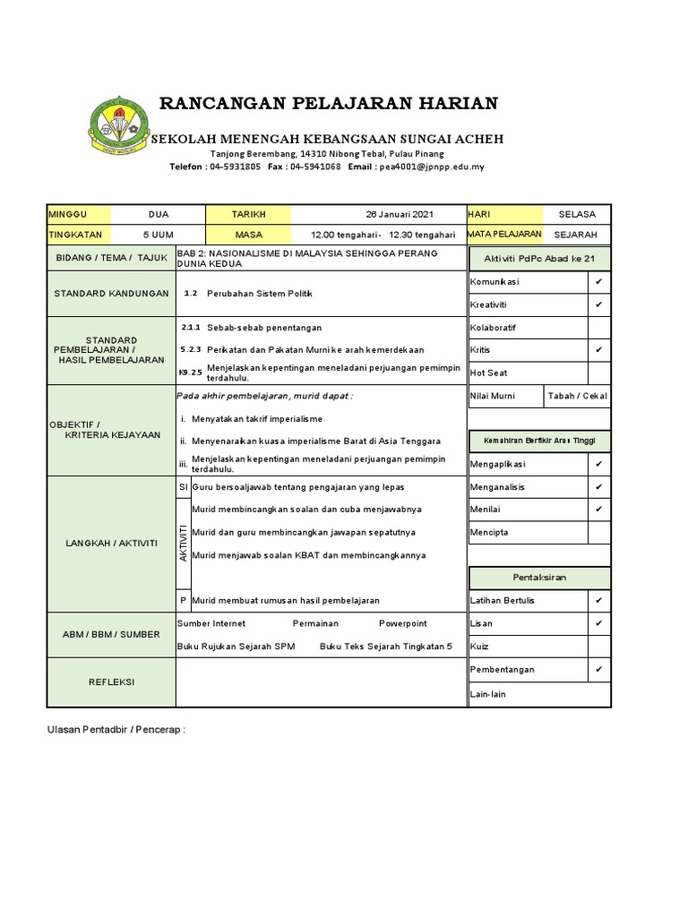 Membezakan antara bidalan dan pepatah dan perumpamaan. Download Rpt Sejarah Tingkatan 5 Baik Rph Sejarah Tingkatan 4. RPH ini merujuk kepda rancangan pengajaran harian yang kita sediakan sebelum sesi pengajaran dan pembelajaran bermula.